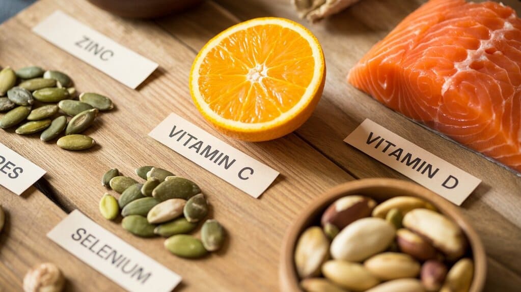 • المعادن: مثل الزنك، الحديد، المغنيسيوم، والسيلينيوم