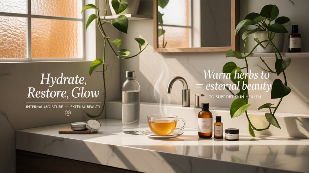 أهمية الترطيب الداخلي من خلال شرب الماء والأعشاب الدافئة لجمال البشرة