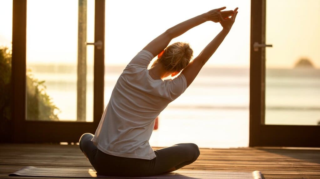 | الصباح | التعرض للشمس + تمارين خفيفة | تنظيم الساعة البيولوجية |